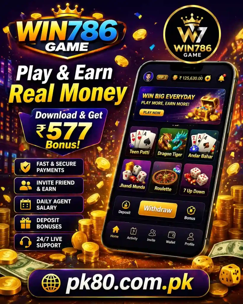 Win786 Game Onlne app is a mobile based earning game designed for Pakistani users. It allows players to enjoy games while earning rewards through participation, and many users consider it a modern real money app for smartphones. The platform mixes entertainment with practical earning opportunities every day, which makes it attractive to many online users.